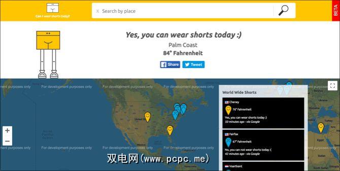 您还将看到该位置的温度,地图上带有笑脸和皱眉的斑点以及一个滚动显示世界各地景点的清单,显示这些短裤是好还是坏的一天。您可能还会细读一些最佳天气网站,以获取详细的详细信息。