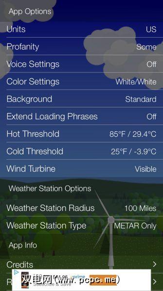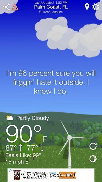 除了简单幽默之外,还有令人讨厌的事情,请查看“预报?"。这个有趣的天气应用程序用一两个简单的语句就可以为您提供当前的条件。而且,如果有一些不好的话不打扰您,您可以将亵渎设置从关闭调整为打开或某些,并启用声音。