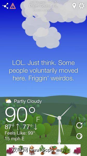 作为最好的iPhone天气应用程序之一,它具有讽刺幽默感,