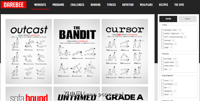 该站点上摆满了锻炼海报,这些海报可以打印在标准A4纸上,也可以打印在较大的A3纸上。您可以从各种锻炼中进行选择,包括一些受流行文化启发的有趣锻炼,例如“蝙蝠侠锻炼"或“饥饿游戏锻炼"。除了练习,您还可以下载可打印的饮食计划和食谱。这样的事情使Darebee成为满足您健康的新年决议的出色工具之一。