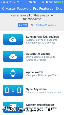 所有内容都使用密码进行加密,您可以从iCloud和Dropbox导入/导出设置。付款后,您会获得一些很酷的功能,例如将帐户分类,跨平台同步和自动备份。