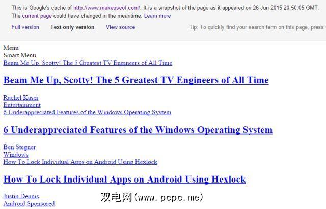 如果您知道要访问的URL,并且尚未在其中更新过去一周(例如,您要阅读的一篇加了书签的老文章),然后使用Google的网络缓存以纯文本格式打开它。