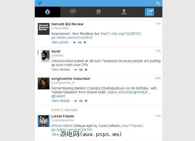 在桌面上使用移动设备的一个很好的例子是Twitter。 Twitter的移动网站(mobile.twitter.com)仅加载所有推文的文本和显示图片。您可以通过单击“查看照片"链接来选择查看任何图像。另一方面,常规网站会自动在推文中扩展照片和视频,这需要更长的加载时间。因此,如果连接速度较慢,请使用Twitter的移动网站。