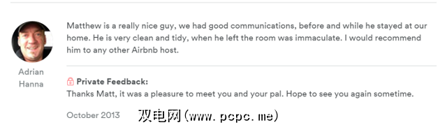 旅行结束后,房东有机会写一些关于客人的词,这些词会显示在他们的个人资料上,并且不能更改或更改。访客删除。获得良好的反馈,更多人可能会租给您。如果您积累了很多负面反馈,没有人会租给您。 就这么简单。