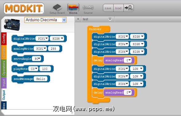 还有其他版本的Arduino,例如具有更快芯片,更多内存和更多I / O引脚的Mega,但它们基本上是相同的–大小不同。如果您将任何Arduino模型都当作主要学习设备,我也强烈建议您前往Kickstarter并帮助资助Modkit项目,这是一种创新的可视化编程软件,使学习者可以轻松使用C ++。