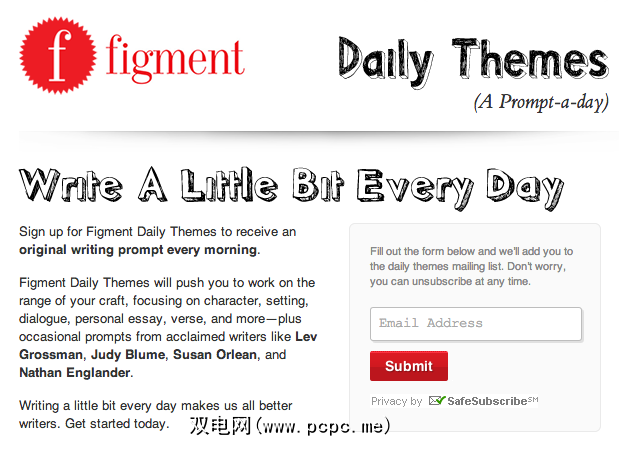通过电子邮件从在线服务中接收每日新闻,您也可以在线接收写作提示。 Poets&Writers和Figment是提供新闻通讯服务的网站,每天或每周都有写作提示。将提示直接发送到电子邮件的便利性是确保您不会忘记灵感来源的好方法。如果您每天尝试写作,这将特别有用。
