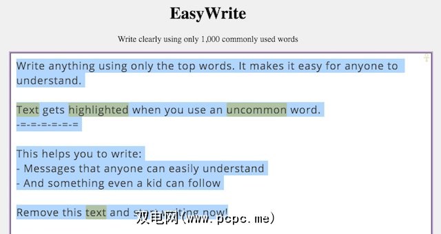 清除应用程序中的文本并开始编写。每次您输入不常用的单词时,都会突出显示该单词。尝试并在写作中尽可能少地突出显示内容。一般来说,您将无法避免使用某些单词,但请尽可能查找同义词以查找不常见的单词,以使您的写作更清晰。