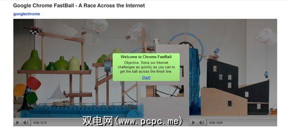 酷炫的互动式YouTube游戏的创建是为了展示Chrome的速度。 Flash游戏加视频是在去年推出的,当时Chrome成为美国第三大最受欢迎的浏览器。面临的挑战是使用其他Web服务(例如Twitter,last.fm等)完成一系列步骤,以使铬球尽可能快地到达终点。挑战以任务和谜语的形式出现。您的目标是在尽可能短的时间内完成它们。跳过步骤会有罚分。如果您四处搜寻,您还会在游戏中找到一些“备忘单"。
