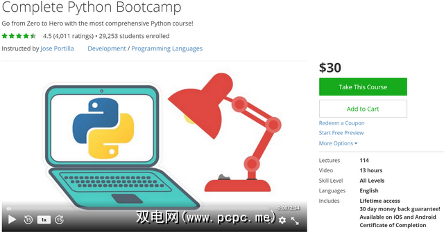 如果您有大量的编程经验,则最好跳过这一门,因为我们今天要讨论的其他课程可能对您的知识水平更好。不过,对于初学者来说,这应该是一个坚实的起点。