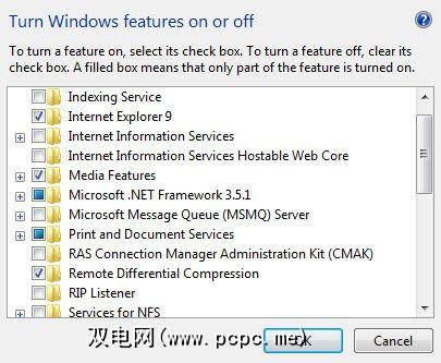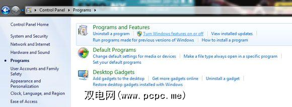 只需转到控制面板->程序->打开或关闭Windows功能。
