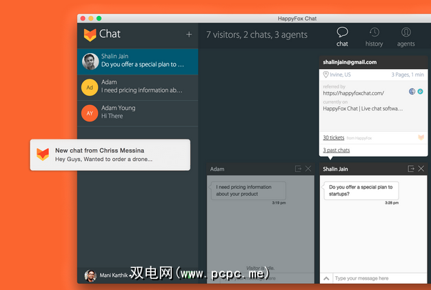 如果您需要免费的网站聊天室,请将其添加到服务列表中以进行退房。它提供了一个非常不错的免费层:主要限制是存档的持续时间。带有本地通知的桌面应用程序可以轻松地保持对话状态,并且与HappyFox的其余部分集成对于在该生态系统中进行投资的任何人来说都是一个很大的优势。