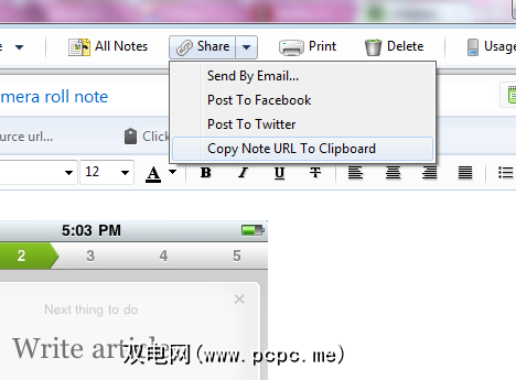 自桌面以来客户端提供了适用于Windows和Mac的便捷屏幕截图工具,通常可以非常轻松地共享屏幕截图。截取屏幕快照后,只需单击笔记顶部的共享>将笔记URL复制到剪贴板(对于Mac客户端,位置可能会有所不同)。