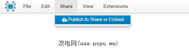 创建第一稿思维导图后,您可以通过两种方法将其共享给您的业务伙伴。从MindMup内部进行共享的一种方法是使用 Share 菜单选项,然后选择 Publish to Share or Embed 。发布