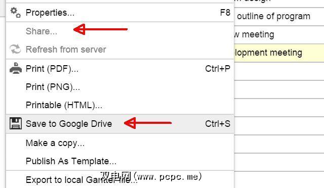 您会从Gantter内部注意到“共享"选项显示为灰色,因此您可以不要直接从工具内部共享计划。同样,由于可以从Google云端硬盘中获取,因此您可以选择从同一菜单中将项目计划保存到Google云端硬盘。