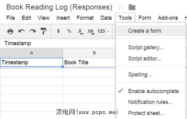 要创建这样的表单,只需创建任何Google表格,请转到工具菜单,然后选择< strong>创建表单。