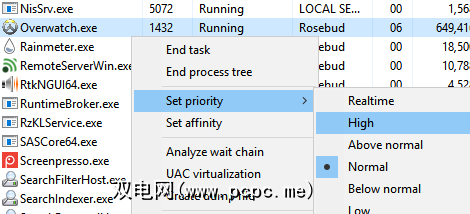 您还可以使用任务管理器设置程序优先级,从而提高程序性能。右键单击列表中的一项,然后选择转到详细信息。再次右键单击该项目,然后将设置优先级设置为高于正常或高。