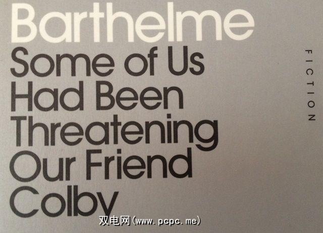 巴特尔姆(Barthelme)主要侧重于写短篇小说,因此,再一次很难挑出一个要突出的故事。我不得不和一起去,有些人一直在威胁我们的朋友Colby ,因为这是我读过的第一本作品,并且会一直很珍贵。