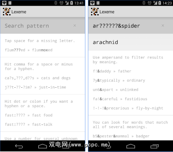 Lexeme是Play商店中最好的填字游戏解决方案。它可以帮助您解决常规的填字游戏和隐秘的填字游戏,它包含一个字谜查找器并具有内置的同义词库。甚至可以帮助您解决其他益智游戏中的七巧板。