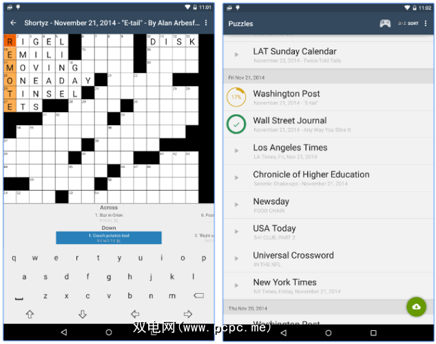 其突出的功能是能够从中下载免费的拼图游戏许多来源。它们从主流出版物(例如《今日美国》和《华盛顿邮报》)到更专业的杂志(例如《高等教育纪事》)不等。如果您已订阅,也可以下载《纽约时报》的拼图。