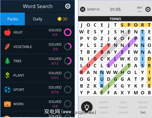 Play商店中装有单词搜索应用程序,但我最喜欢的是MetaFun提供的这项服务。它具有清晰的图形,数百个谜题(按类别细分),定时游戏,甚至是多人游戏模式。