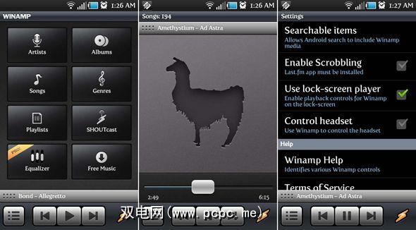 尽管没有付费限制,Winamp仍然是Android的首选音乐播放器之一。在许多方面,Winamp就像Songbird:它具有干净的(尽管很无聊)界面,可以按流派对音乐进行分组,并且具有“正在播放"的抽屉。 Winamp还可以通过Shoutcast调入Internet广播电台,尽管这需要Wi-Fi连接或大型数据计划。