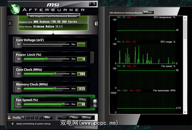 MSI Afterburner并非GPU独有,它是周围最好的实时监视GPU工具。 Afterburner允许用户在一个程序中超频并监视他们的软件。