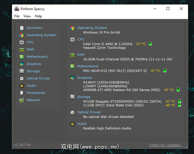 Piriform的Speccy,来自于CCleaner以其PC硬件配置的简单布局而受到游戏社区的喜爱。