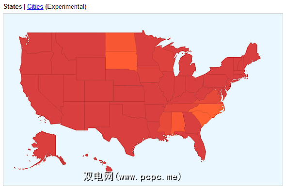 您可以从上面的Sickweather地图中看出Google流感趋势可能具有反应过度。很明显,流感已经蔓延到了广泛的地方,但大多数的疾病都居住在人口稠密的城市。
