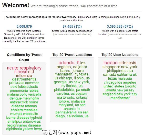 MappyHealth可能以与Google趋势类似的方式对Twitter进行索引,但可能会遭受不良的网站美感,但其方法论可以对各种疾病进行出色的分析。它只是在Twitter上扫描与疾病有关的关键字,并对其位置进行索引并确定潜在疾病。
