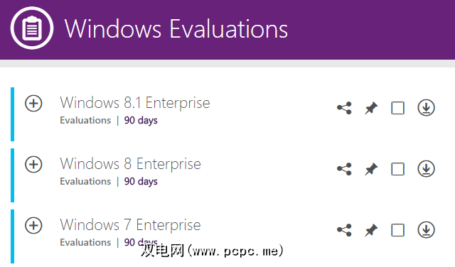 您不仅可以免费试用Windows 10技术预览版,还可以获得其他Microsoft操作系统的评估版。 Microsoft当前在其TechNet评估中心中提供Windows 8.1 Enterprise,Windows 8 Enterprise和Windows 7 Enterprise的90天免费Windows评估副本。