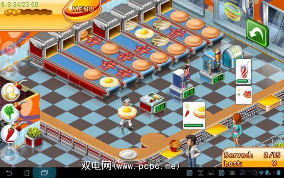 在每个回合中,取决于您和您自己,以正确的顺序在输送线上敲击正确的配料,以将客户订购的东西放在一起,如图所示在他们头顶的窗户里。觉得简单吗?好吧,您还必须添加任何调味品,以及任何其他薯条或苏打水。事情可能很快就变得忙碌起来,但是由于平板电脑的大屏幕以及可以在触摸屏上使用手指的快速反射功能,因此在这款游戏中,您将在平板电脑上达到比以前更高的水平PC。