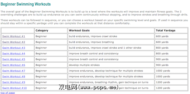 100个游泳锻炼:每种游泳者锻炼的简单列表