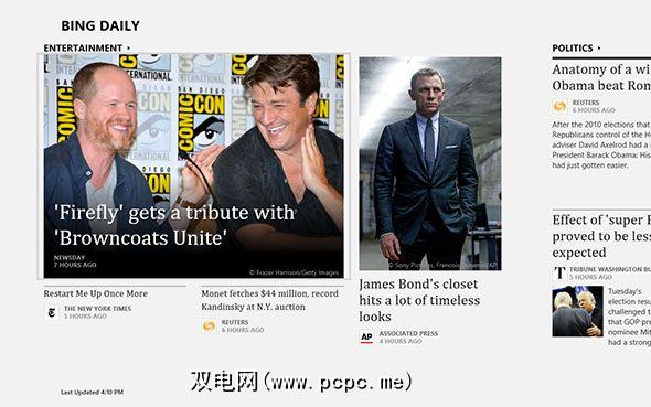 当然,Windows 8附带了一个可向您显示来自网络的文章的应用程序。它叫做Bing Daily,而且有效。您无法选择来源,这意味着某人只是向您展示他们认为您想要的东西,但是它可以工作。