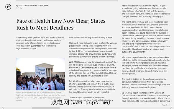 当然,其他应用程序在使用Metro界面方面做得更好。他们更漂亮。但这是《纽约时报》,因此,如果您喜欢他们的内容,则这是您的应用。