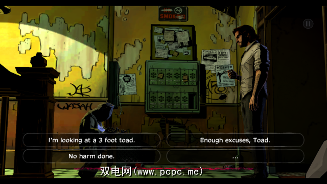 虽然TWAU是作为PC游戏开发的,但我发现控件可以在触摸屏上有更多的意义。大多数游戏玩法都包括导航对话框树并点击环境中的对象以让Bigby可以查看它们,这在两个平台上都可以正常工作。