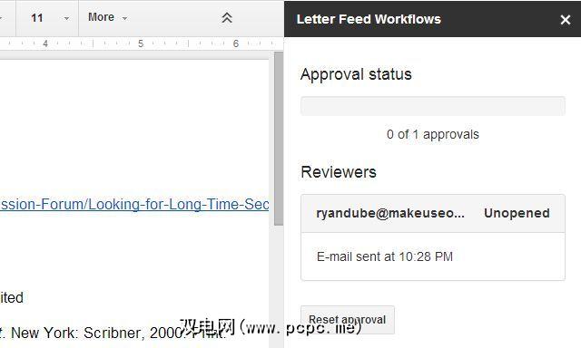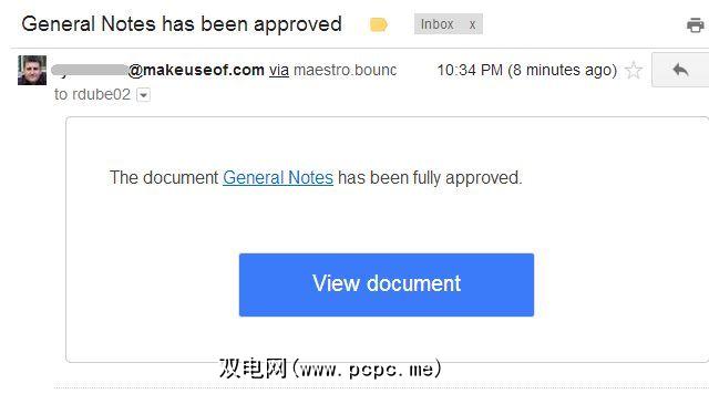 它称为工作流,因为它实际上使您可以通过收件人的工作流运行文档,每个人都可以轮流编辑草稿并批准文档。批准工作流程的每个阶段完成之后,下一阶段的收件人将收到一封电子邮件,提示他们进行输入,审阅和批准。