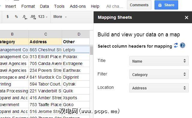 我的另一个最喜欢的Google Drive附加组件肯定是Mapping Sheets。使用此附加组件,您可以更好地利用电子表格中可能包含的所有地理数据。如果您想通过一种简便的方法将数据中的位置快速绘制到Google Map上,就可以。