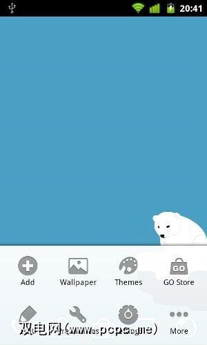 要应用主题,请点击主题在Go Launcher EX中,依次单击“菜单"按钮,然后点击“主题"按钮(下面第一行的第三个图标):