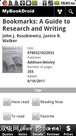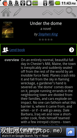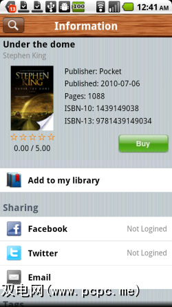 此应用的最酷的功能是在图书信息页面上的链接下方要将这本书添加到您的个人电子图书馆,这是三个与朋友共享图书信息的链接。