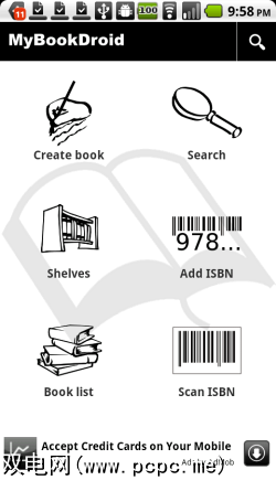 创建MyBookDroid是出于一个原因和一个原因–登录并组织您的藏书。虽然您可以通过输入书名或进行搜索来手动“创建"一本书,但该应用程序的真正魅力在于能够快速扫描或在应用程序中输入ISBN号并将其添加到您自己的书架中单击一两下。