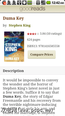 我第二个最喜欢的图书图书馆应用程序叫做aNobil。这是这些应用程序中的另一个,可让您快速扫描任何书籍以立即获取有关它的信息。这是一个非常社交的应用程序,它提供的用户评论数量比我评论过的任何其他Android图书应用程序都要多。正如您在下面看到的那样,我正在阅读的斯蒂芬·金(Stephen King)图书近300个评分。