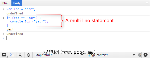 这是学习以下内容的一种非常好的方法反复试验,因为它是如此容易获得,并且零恐惧。您无法造成任何损失-您所做的任何更改都不会保存在任何地方,只需按一下F5键即可恢复所做的一切并重新开始。关于控制台的另一件重要的事情是,您不仅限于单行代码:您可以编写多行代码。要开始新行而不执行您到目前为止输入的代码,请按Shift + Enter。