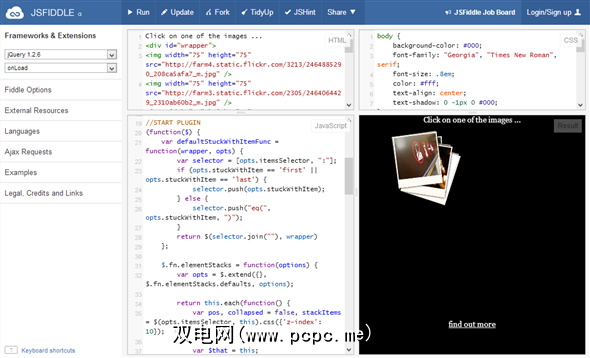 有时,您可能希望创建自己的环境:HTML,CSS,JavaScript的自定义组合库和您自己的代码。这可以帮助您测试更全面的想法。如果您想创建类似这样的东西而不必在本地设置任何东西,则需要jsFiddle。这是一个四窗格环境:HTML,CSS,JavaScript和输出。侧边栏使您可以选择各种附加功能,例如要依赖的JavaScript库。还有很多示例,其中一些对于初学者来说可能太复杂了: