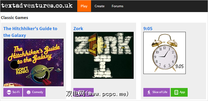 Text Adventures是另一个互动小说游戏创作者和玩家的社区。而且,它也恰好是Zork I的代名词。查看特色游戏或选择诸如拼图或幻想之类的游戏。