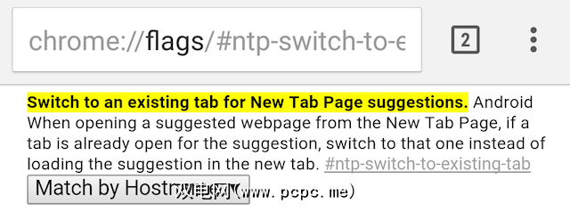 将“切换到新标签页建议的现有标签"更改为“按主机名匹配"。这样,您将被自动重定向到一个打开的标签,而无需让您的Chrome两次执行相同的工作。效率!
