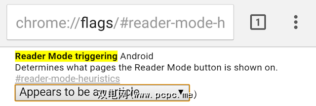 在“触发Android的阅读器模式"下,将“默认"更改为“始终"或“似乎是文章"。我建议使用后者,以免您不小心将亚马逊页面变成类似文章的视图。