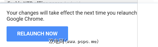 现在请记住,一旦启用或禁用任何标志,系统将显示“立即重新启动"按钮,如下所示: