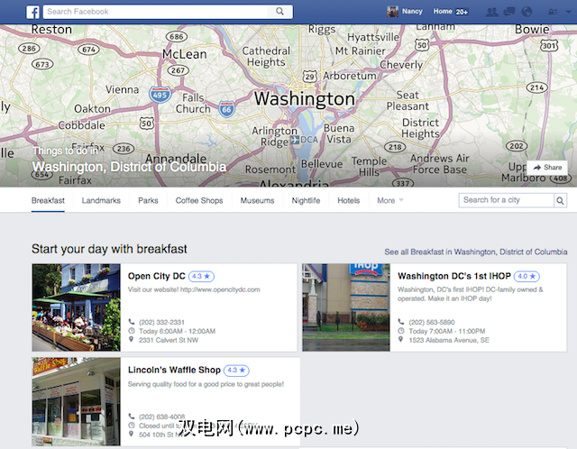 在各个位置上,您可以对它们进行评分和查看,查看菜单,地图以及更多。这些功能还可以直接集成到这些场所的Facebook页面中,前提是他们声称拥有这些功能。
