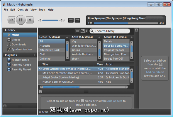 Nightingale是广为人知的Songbird Classic的分支,但随着Songbird最近关闭,Nightingale几乎已成为Songbird的主要分支代码库。坦率地说,夜莺是Songbird从一开始就应该具备的一切:快速,干净,专注于性能而不是让人眼花candy乱。如果您需要其他功能,总会有一个附加组件系统。