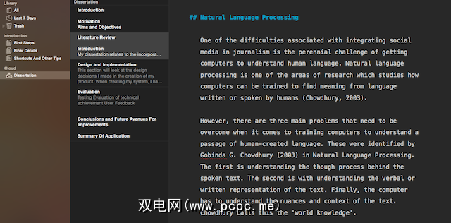 但是iA Writer Pro缺少一些有助于学术写作的功能。它不支持第三方插件,因此很难从Zotero或任何其他参考管理器导入您的引文。与Ulysses的多页文档编辑方法不同,它还只允许您一次处理一个文档。